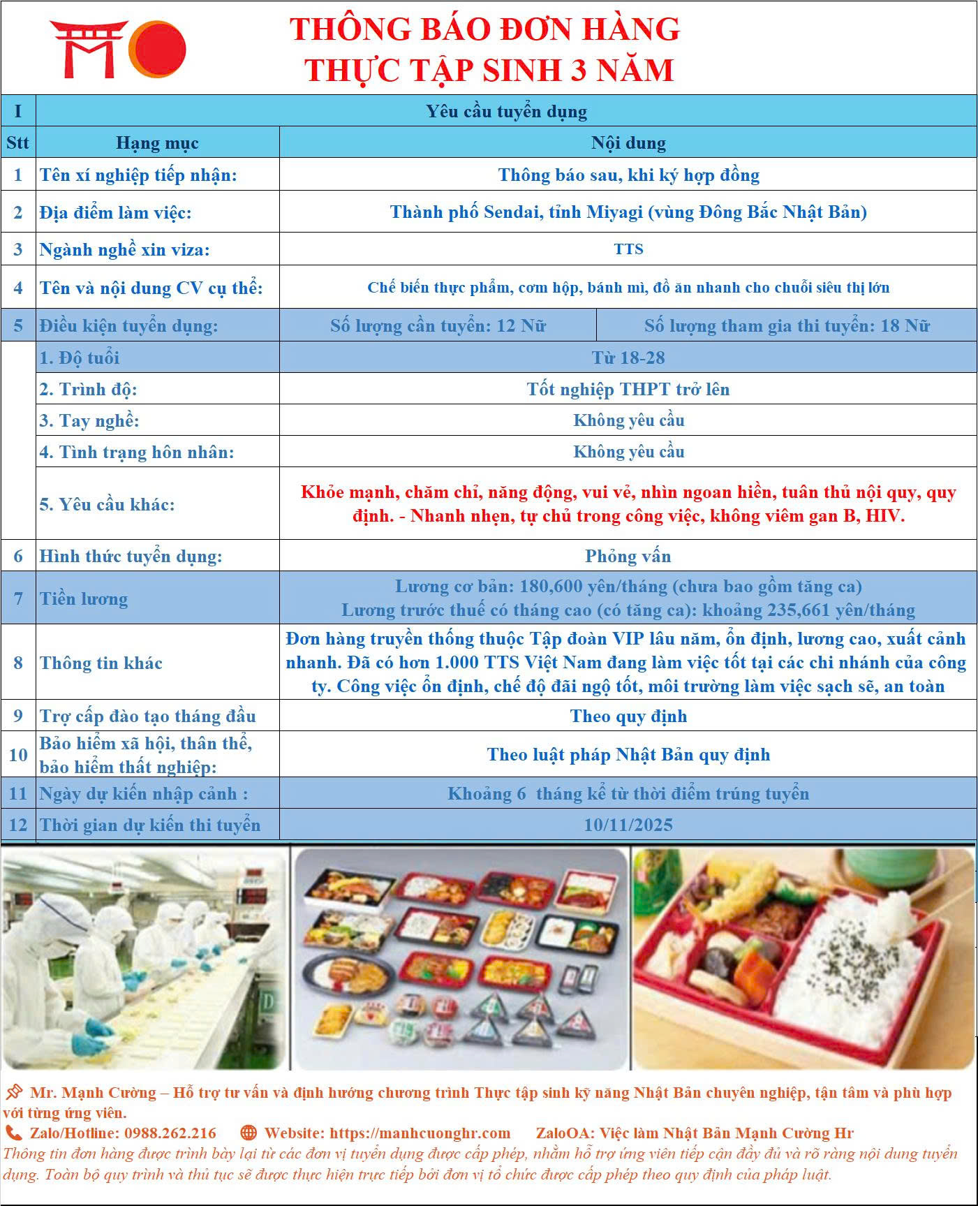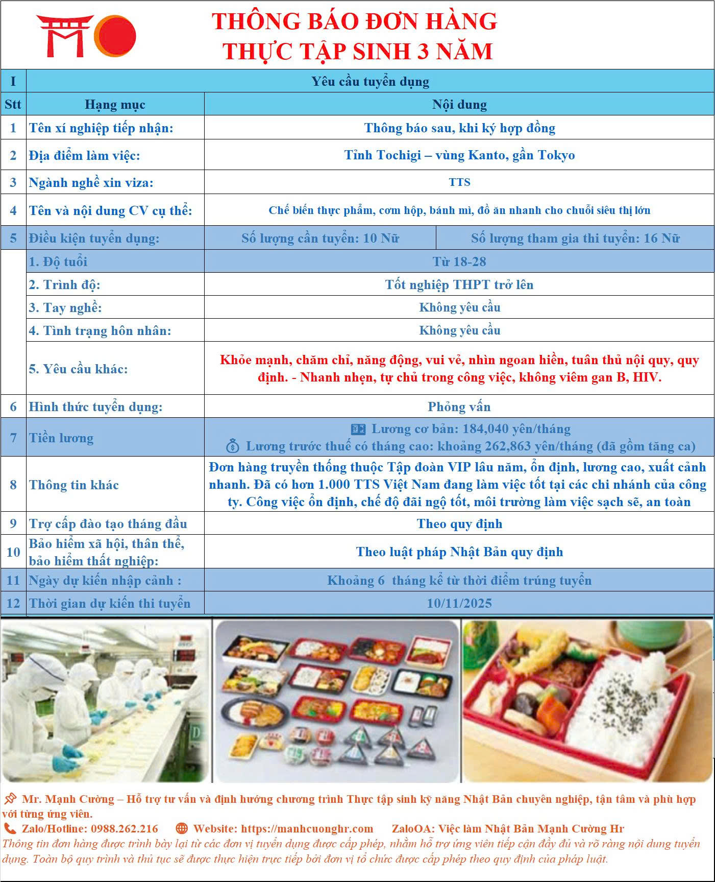 THÔNG BÁO ĐƠN HÀNG CƠM HỘP TOCHIGI