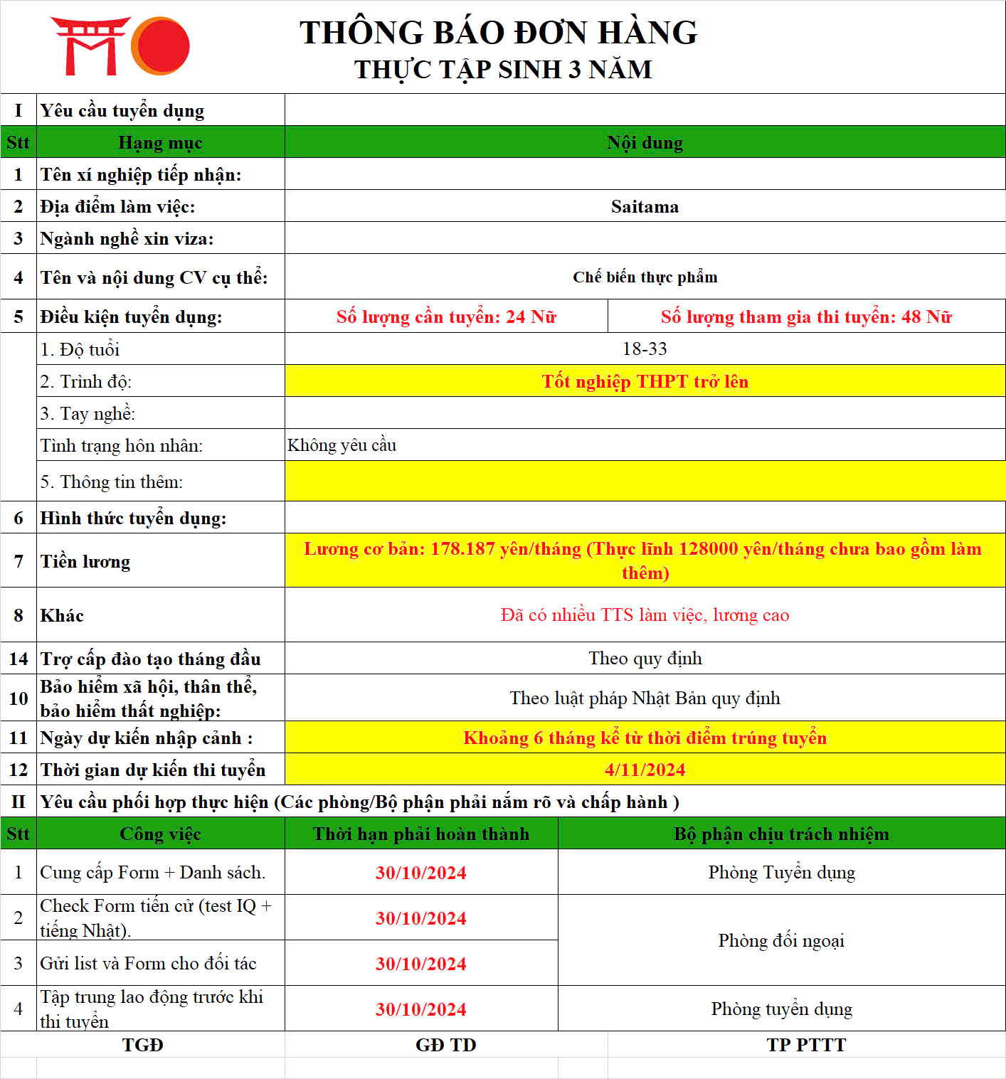 📌 Phúc lợi: “ Công Ty có nhiều việc làm thêm. Thưởng theo năng lực cố gắng làm việc; Tăng lương theo năm và theo cố gắng nâng lực. Tiền Nhà 20.000 yên (Nếu cố gắng làm việc công ty sẽ hỗ trợ tiền nhà). ...