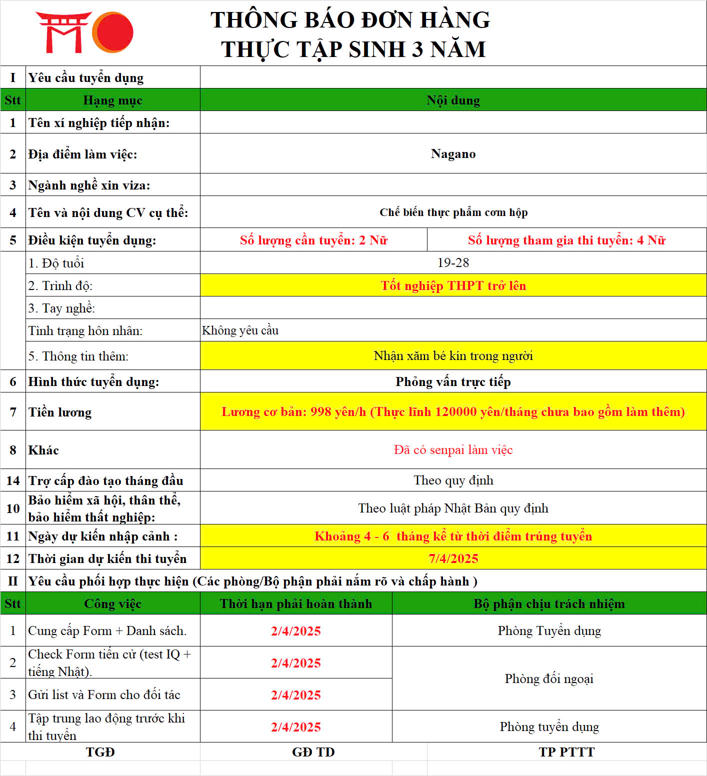 📌 Phúc lợi: “ Công Ty có nhiều việc làm thêm. Thưởng theo năng lực cố gắng làm việc; Tăng lương theo năm và theo cố gắng nâng lực. Tiền Nhà 20.000 yên (Nếu cố gắng làm việc công ty sẽ hỗ trợ tiền nhà). ...