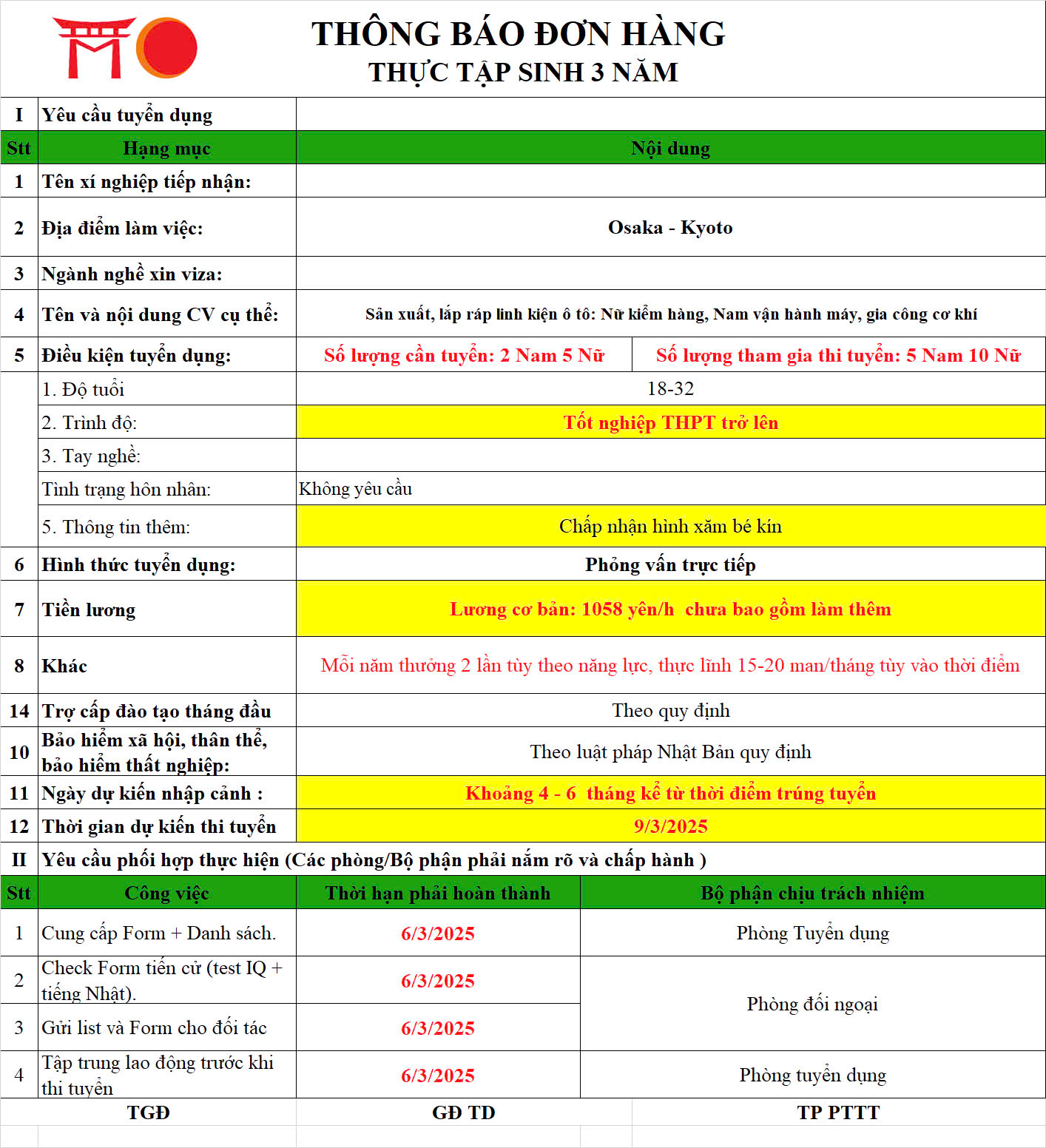 📌 Phúc lợi: “ Công Ty có nhiều việc làm thêm. Thưởng theo năng lực cố gắng làm việc; Tăng lương theo năm và theo cố gắng nâng lực. Tiền Nhà 20.000 yên (Nếu cố gắng làm việc công ty sẽ hỗ trợ tiền nhà). ...