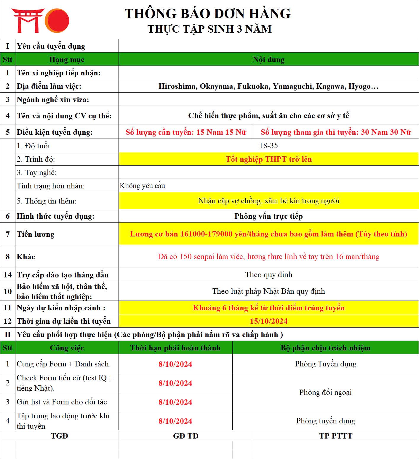 📌 Phúc lợi: “ Công Ty có nhiều việc làm thêm. Thưởng theo năng lực cố gắng làm việc; Tăng lương theo năm và theo cố gắng nâng lực. Tiền Nhà 20.000 yên (Nếu cố gắng làm việc công ty sẽ hỗ trợ tiền nhà). ...