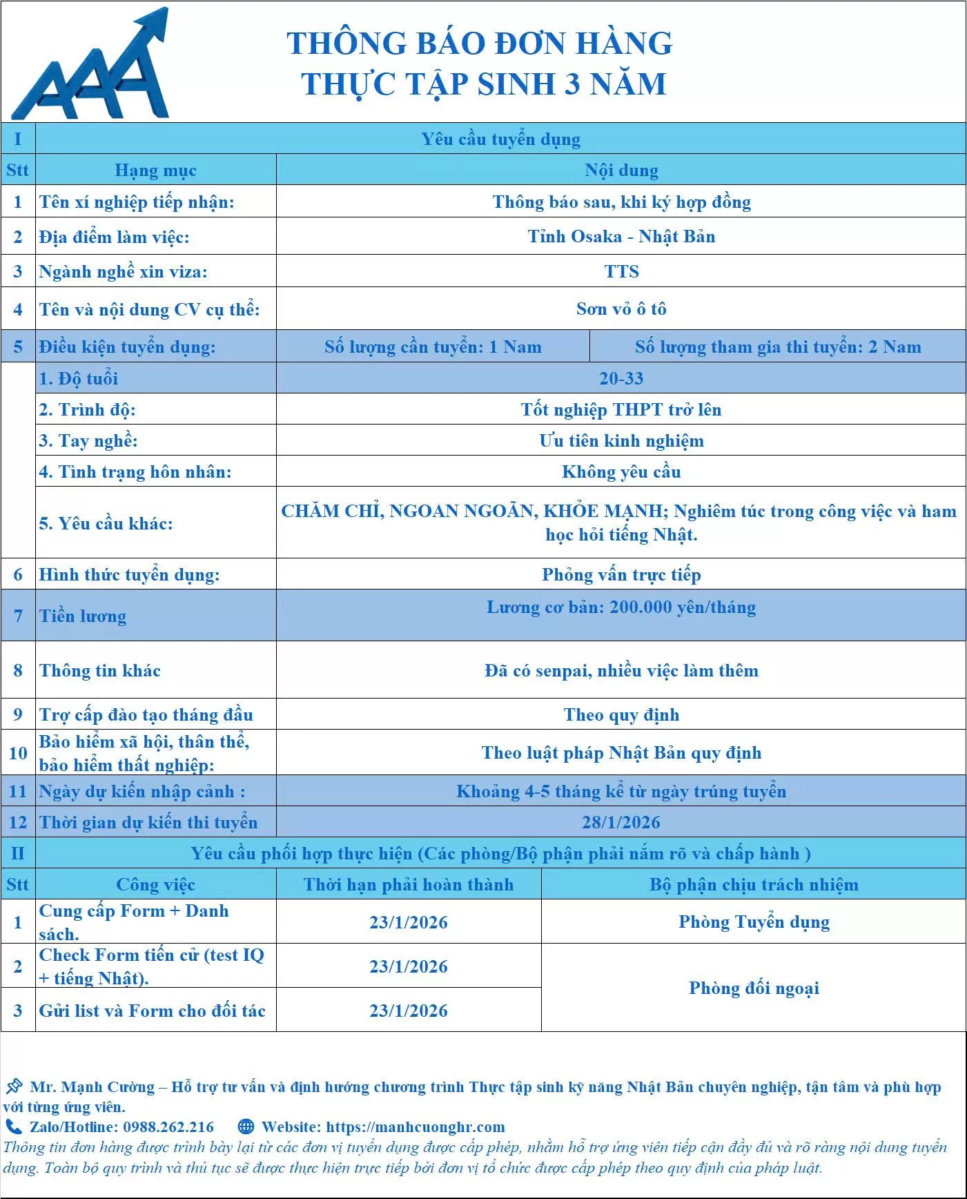 ✈️ Dự kiến xuất cảnh sau 3–4 tháng trúng tuyển