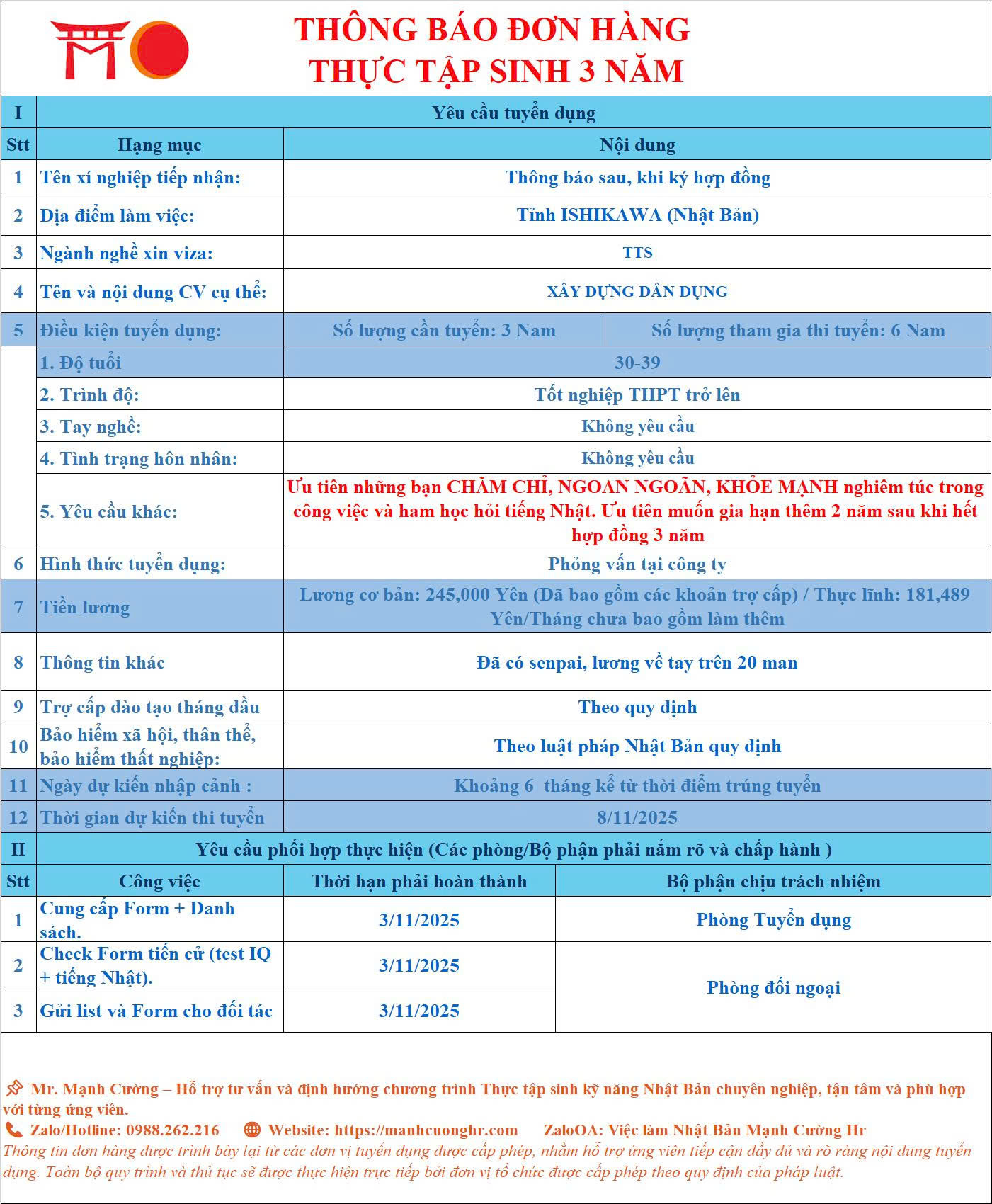 LƯƠNG CỐ ĐỊNH 24.5 MAN/THÁNG TỐI THIỂU! ĐƠN HÀNG XÂY DỰNG DÂN DỤNG LẤY TỚI 40 TUỔI!