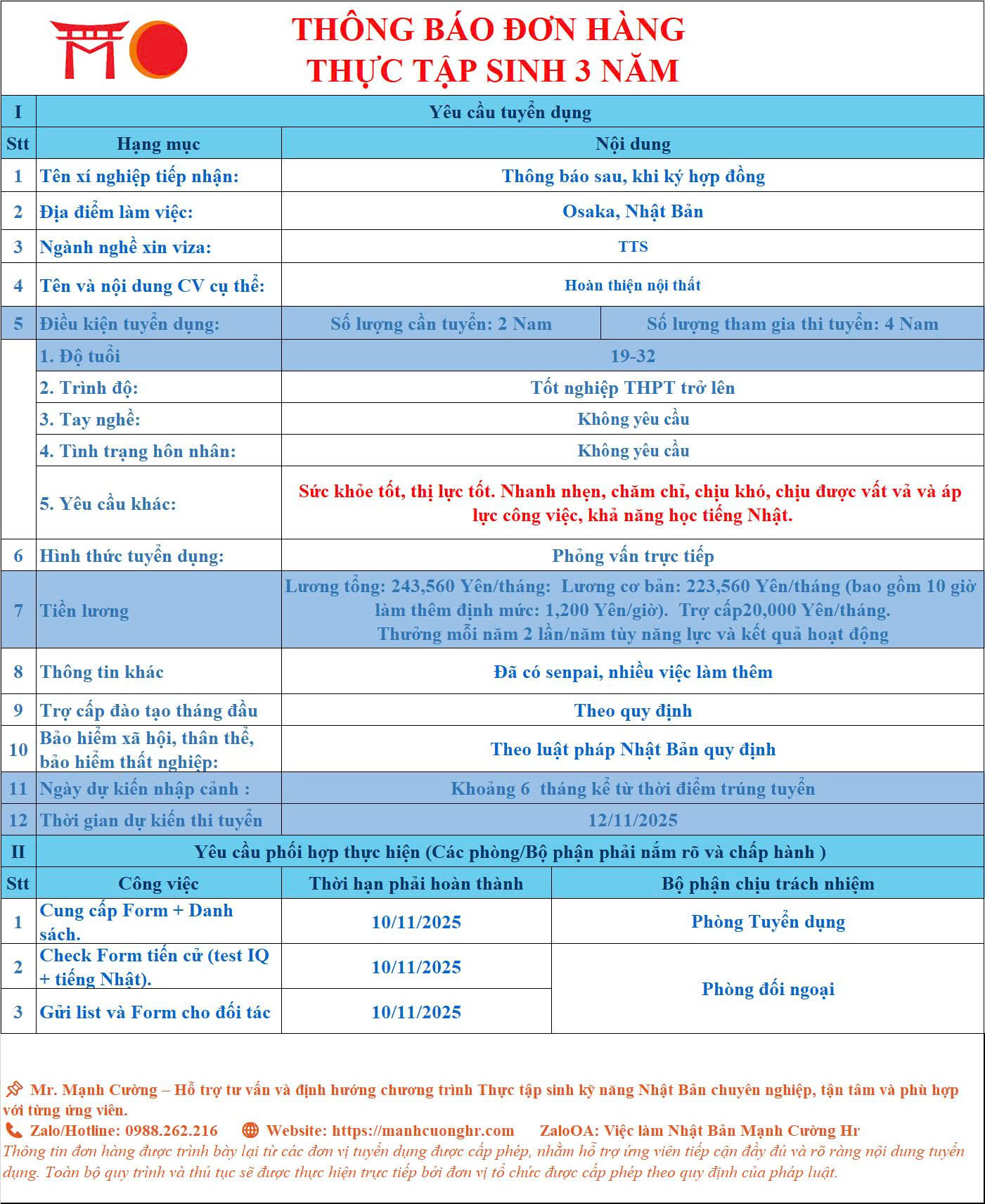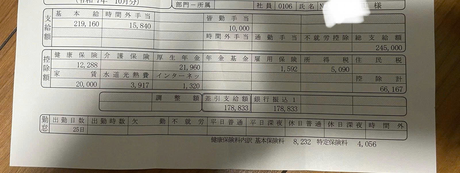 Lương cơ bản: 223,560 Yên/tháng (bao gồm 10 giờ làm thêm định mức: 1,200 Yên/giờ)
