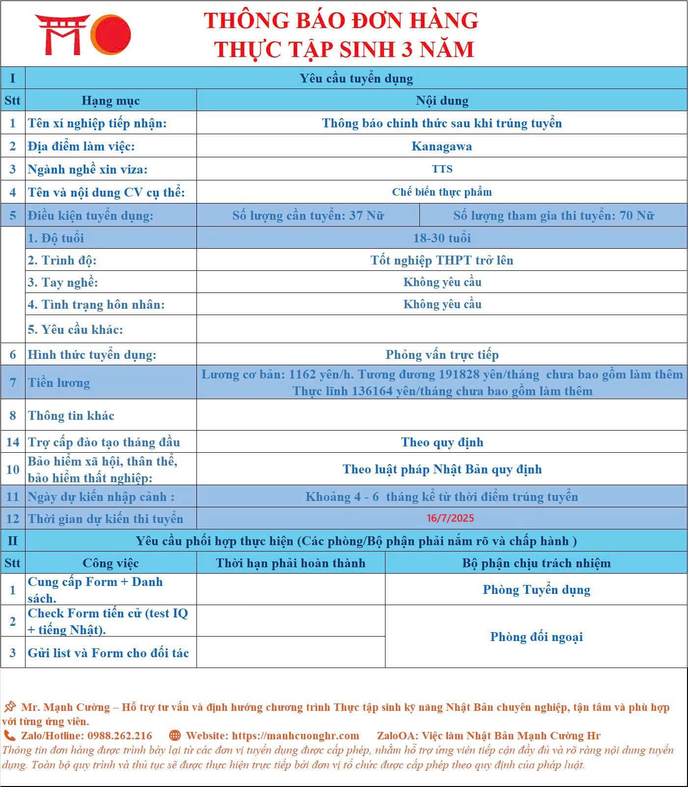 Đơn hàng thực phẩm nữ lương cao, phí rẻ, tỉnh đẹp (Gần Tokyo)