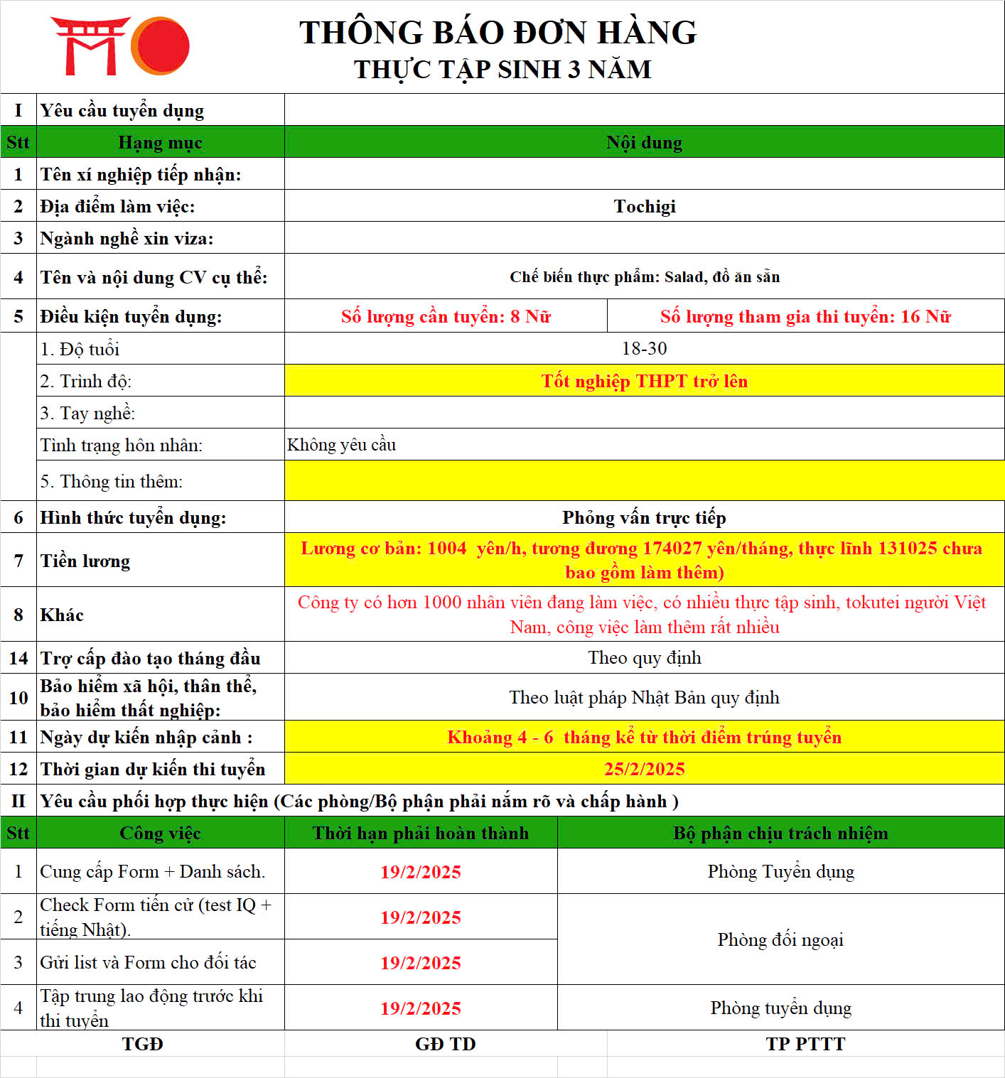 📌 Phúc lợi: “ Công Ty có nhiều việc làm thêm. Thưởng theo năng lực cố gắng làm việc; Tăng lương theo năm và theo cố gắng nâng lực. Tiền Nhà 20.000 yên (Nếu cố gắng làm việc công ty sẽ hỗ trợ tiền nhà). ...