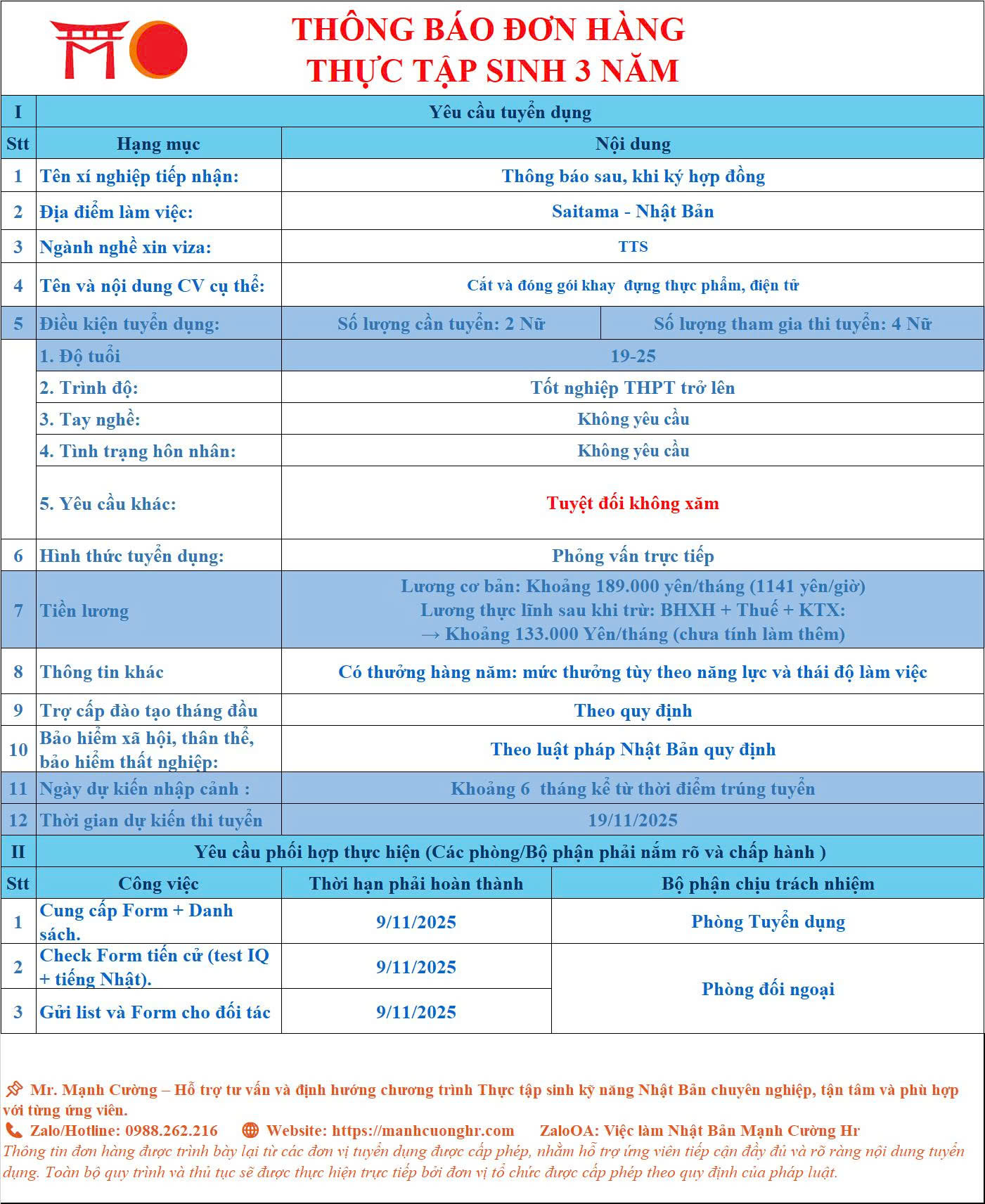 🏢 Công ty lớn, có nhiều chi nhánh tại Việt Nam 🔄 Sau 3 năm có thể chuyển Tokutei hoặc về nước làm tại chi nhánh