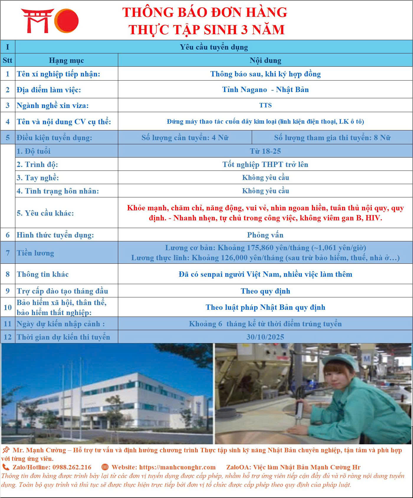 👩🏭 Công việc: Đứng máy thao tác cuốn dây kim loại (sản phẩm: linh kiện điện thoại, linh kiện ô tô...)