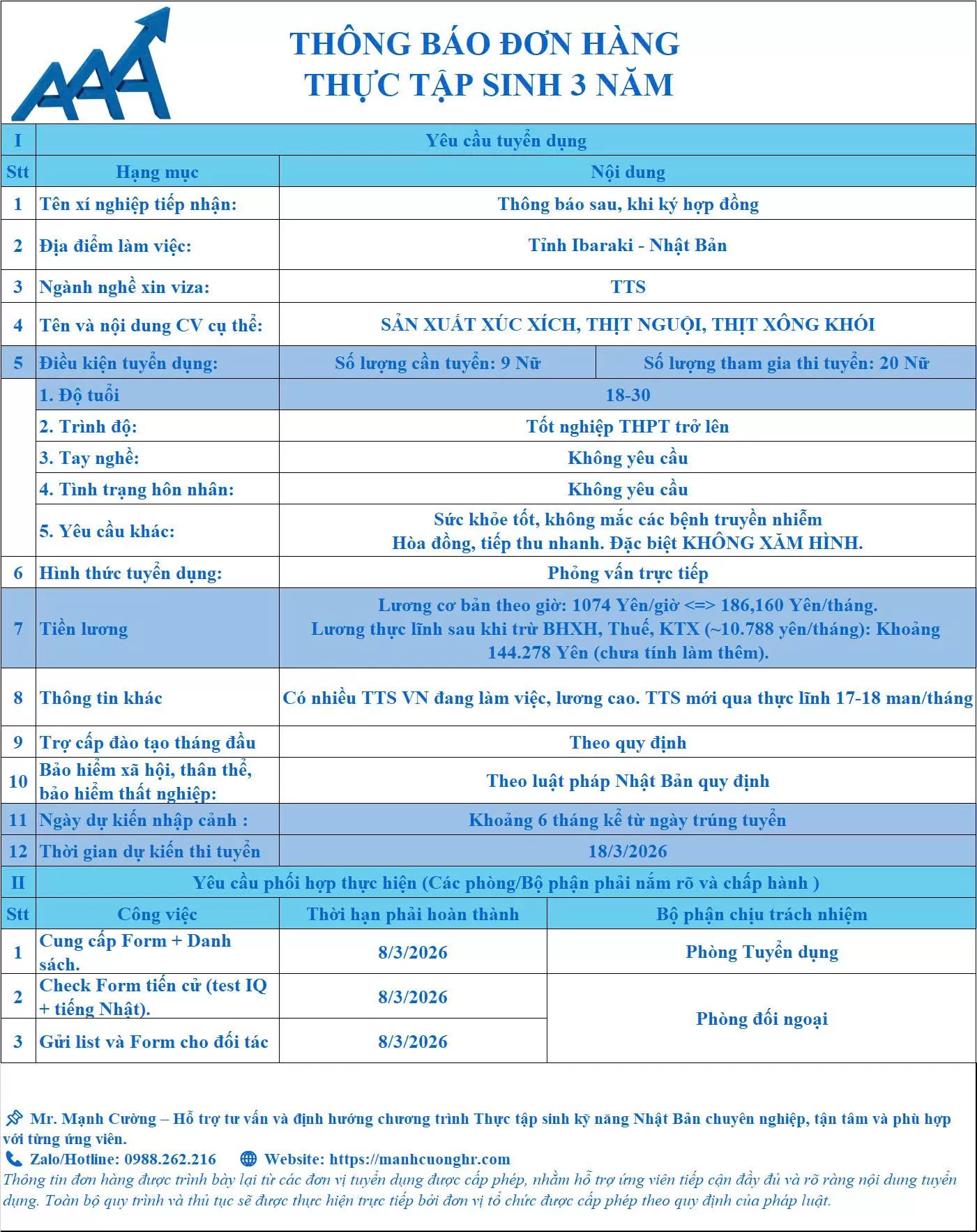 ✅ Tuyển 9 NỮ (18–30 tuổi), tốt nghiệp cấp 3, không yêu cầu tay nghề