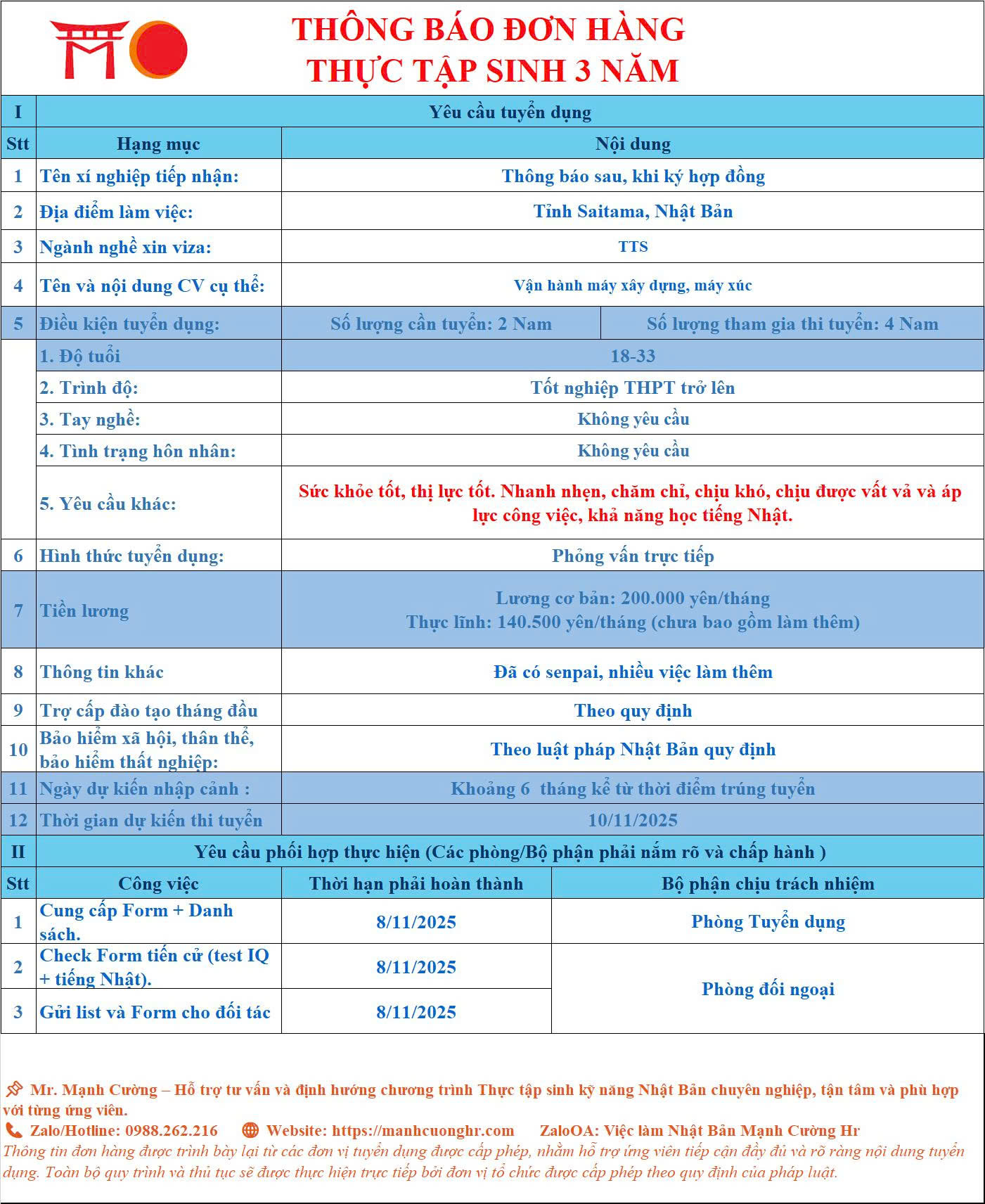 📢 PHỎNG VẤN NGÀY MAI – 10/11 🇯🇵